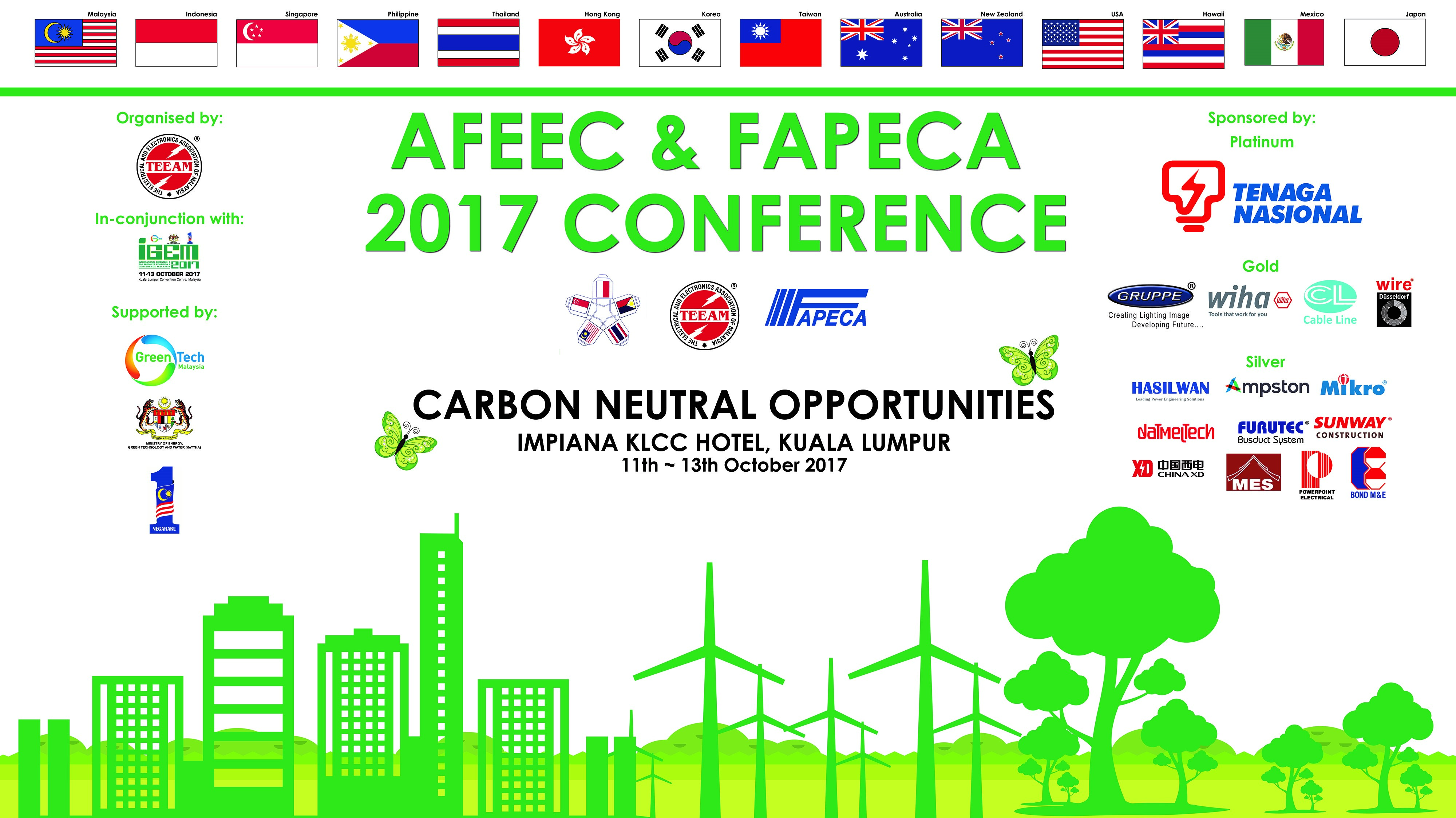 TEEAM successfully hosted the 2017 AFEEC-FAPECA Conference & Meeting in Kuala Lumpur City Centre from 11th - 13th October 2017. Themed "Carbon Neutral Opportunities", the Conference was held on 11th Oct 2017 @ Impiana KLCC. It drew strong participation from eight countries members namely, AKLI Indonesia, SECA Singapore, SPECS Philippines, TEMCA Thailand, HKECA Hong Ko...