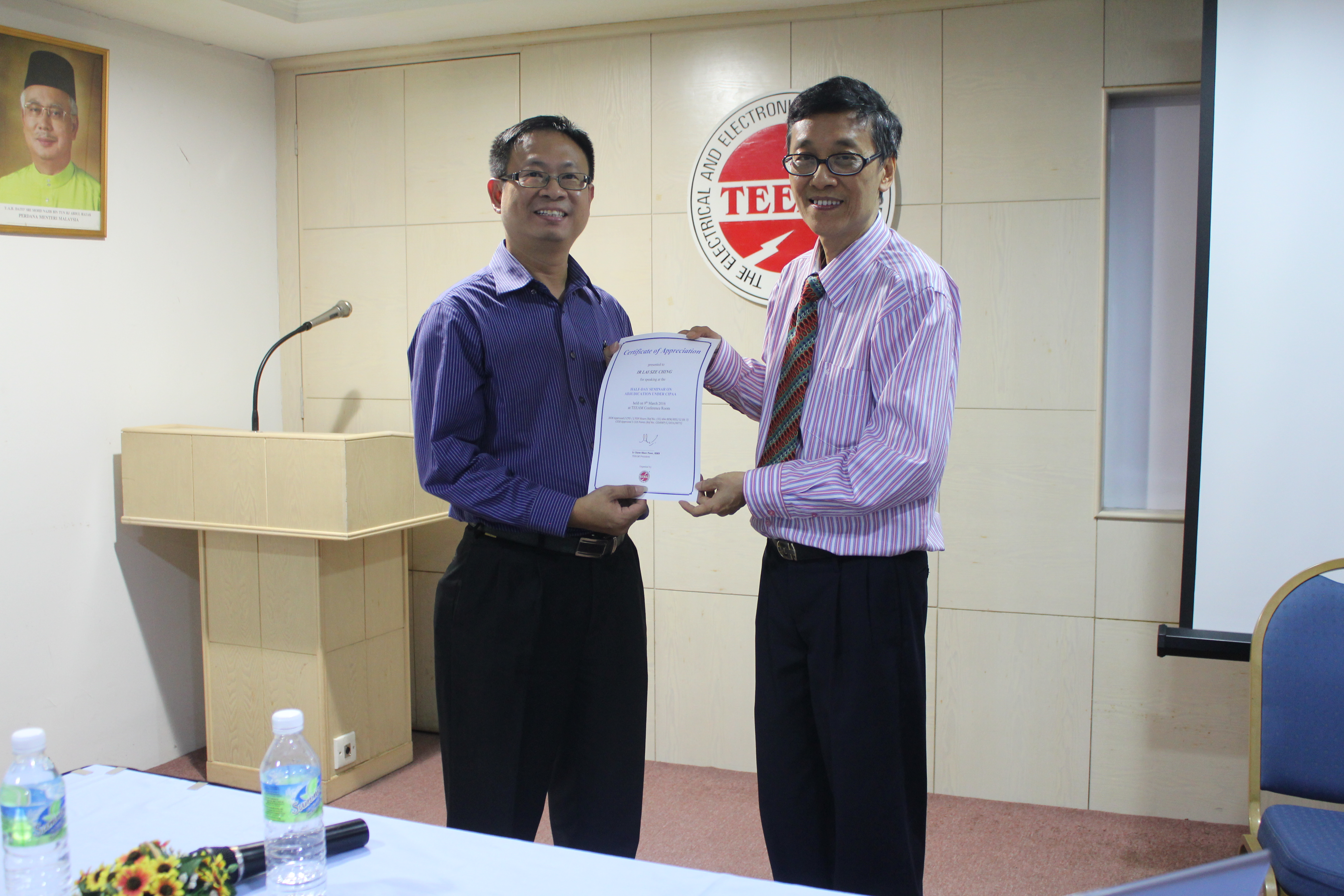 TEEAM has organised a half-day seminar on “Adjudication under CIPAA – Construction Industry Payment and Adjudication Act ” on 9th March 2016 at TEEAM Conference Room. This seminar aimed to provide an overview of adjudication and the procedure required under the Act and also the potential problems that parties to construction contracts may encounter. The seminar was approved with 5 CCD points from CIDB. Some 50 members attended the seminar. It was very informative.