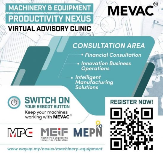 1) Financial Consultation – Advisory on challenges and issues faced by machinery and equipment (M&E) industry players in relation to finance and capital including getting assistance from banks, government ministries and agencies during this COVID-19 outbreak to sustain and continue running the company at lowest cost.