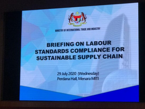29 July 2020 – MITI organised a Briefing to promote awareness on Labour Standards Compliance for Sustainable Supply Chain. The session aimed to urge Malaysian manufacturers to comply with labour standards in eliminating issues related to foreign workers. Focus areas: