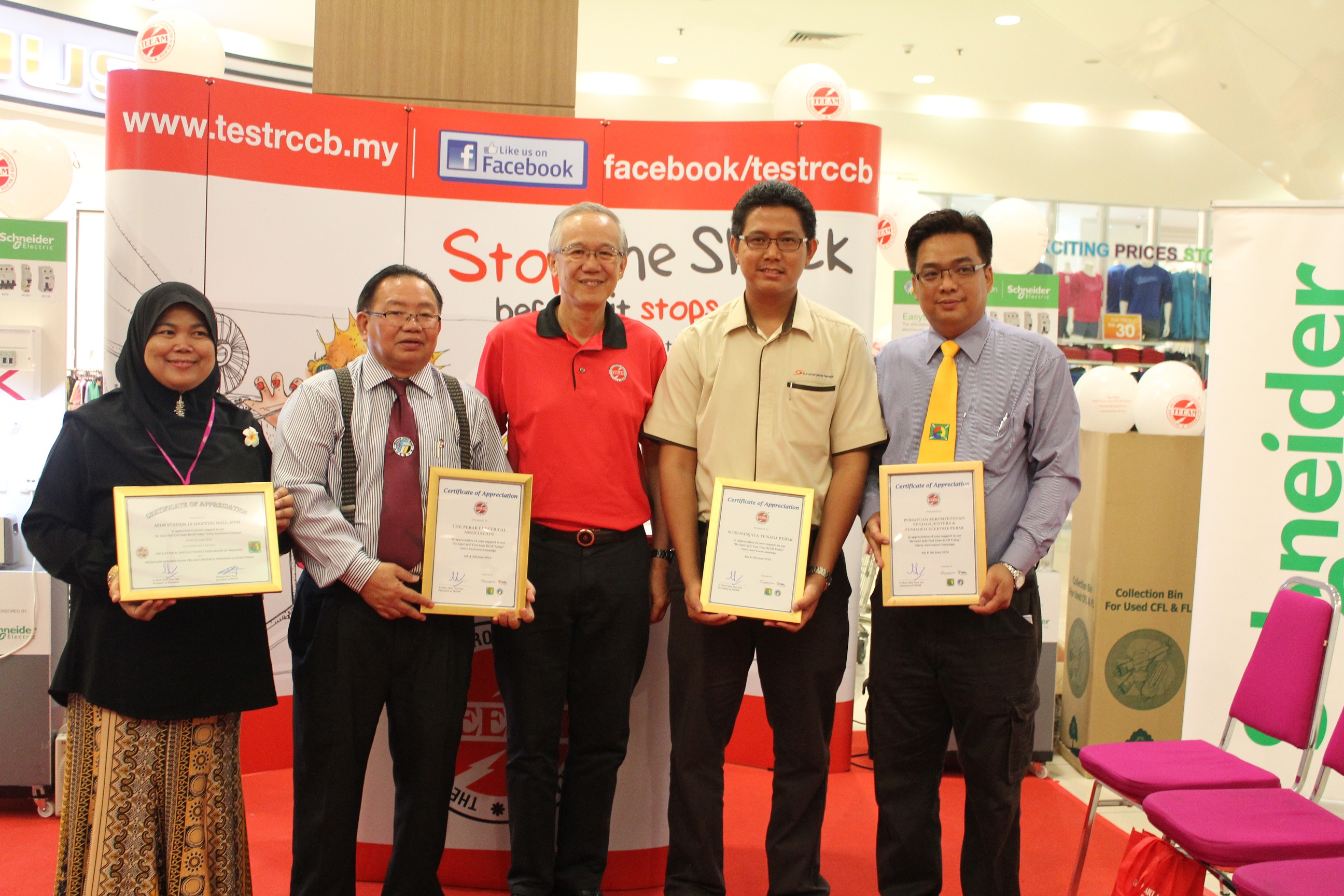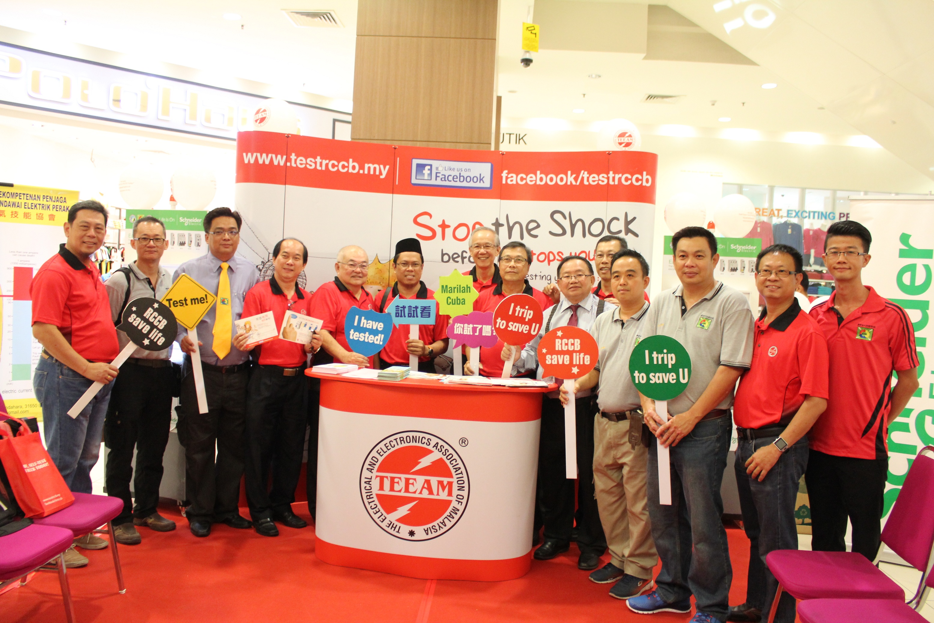 Over the past two years, TEEAM received the most overwhelming response for the national campaign on Self-Test Residual Current Circuit Breaker (RCCB) from Ipoh Station in 2015. TEEAM conducted another roadshow in Ipoh this year to create more awareness and to brief the public on the importance of Self-Test RCCB at home. A 2-day roadshow was held on 4th & 5th June 2016 at the AEON Ipoh Station 18 Shopping Centre. This was jointly organised with the local State Associations, namely, Perak Electrical Chargemen & Wiremen Competence Association (PKPPE) and the Perak Electrical Association (PEA). It was supported and sponsored by Schneider Electric Industries Malaysia Sdn Bhd.